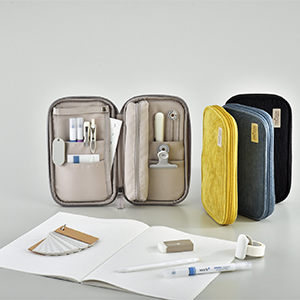 | 食パン | 文具を入れていない状態で厚さはわずか3pながらペンの想定収容本数は18本と大容量です。ちなみに、厚さ3cmは4枚切りの食パンとほぼ同じ厚さです。ペンケースだけでなく、メイクポーチや編み物のかぎ針入れとして使えそうだとSNSを中心に大きな反響をいただいています。