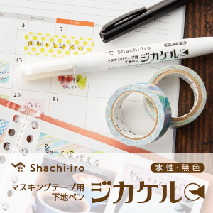 | ジカケル | 「ジカケル」は、マスキングテープに塗布して乾燥させると、水性インキでもはじかずに書くことができるマスキングテープ用の下地ペンです。無色透明のインキなので、マスキングテープのデザインを損ねません。お好みの水性ペン・万年筆・ガラスペンで、マステに筆記・描画を楽しむことができます。