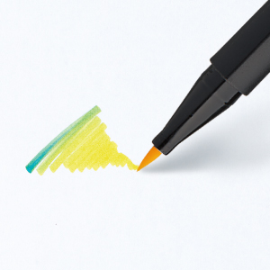 | ブラッシュタイプ | 「いろもようペン」のペン芯は、しなりが良く耐久性に優れた極細のブラッシュタイプ。筆圧に応じてさまざまな表現ができるので、細かな色付けや、広い面への色塗りも、思いのままに美しく表現できます。