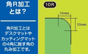| 7 | デスクマットやカッティングマットのコーナーに丸みをつける角R加工のRとは何の略称か?