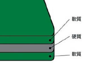 | 傷跡が目立ちにくい | 軟質塩化ビニールの「収縮」という素材特性を活かし、カッターなどでカットされたマット表面部分の切跡が収縮し傷跡を目立たなくします。芯材として硬質を挟むことにより、反りが起こりずらい3層構造になっています。