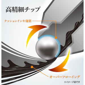 | FLOATUNE | 「FLOATUNE」は、インキがなみなみと流れるシステム×特殊なインキのクッション効果の仕組みによって、ボールペン筆記時に生じる摩擦を極限まで軽減し、浮遊感のある書きごこちを実現しています。