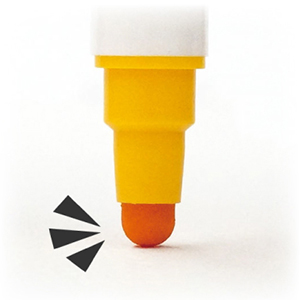 | ドットペン | ドットペンの芯先は、最大径約5mmから最小径約1mmのドットを描くことができるだけでなく、その弾力を生かしてしずく型を描くこともできます。