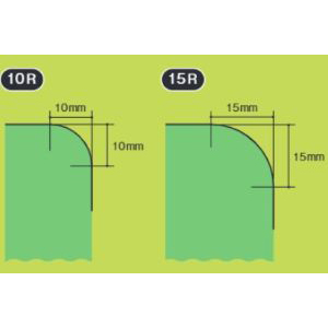 | 丸くする | コーナーの角を丸く処理することを角R加工と言います。角のあたりを良くするために施されます。ちょっとした角Rの大きさの違いによりマット全体のデザインやイメージが変わってきます。角Rが大きいほど全体のイメージは柔らかくなります。小さければ小さいほどシャープでスタイリッシュなイメージになります。